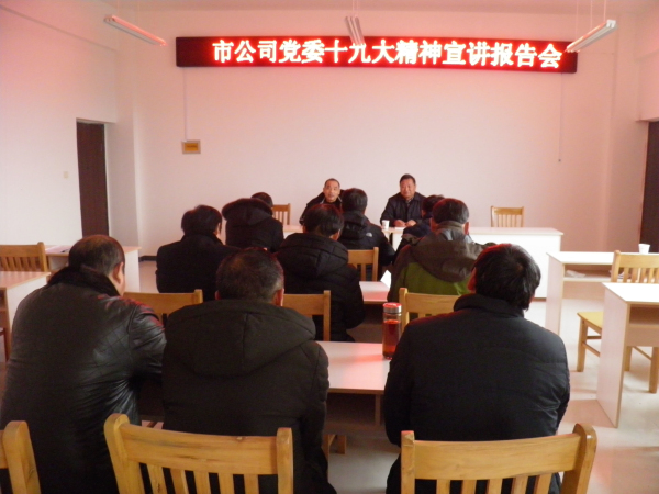 近日,蚌埠市公司黨委委員、副經理吳澤星同志到固鎮公司宣傳貫徹十九大精神,全體在崗黨員參加了報告會。