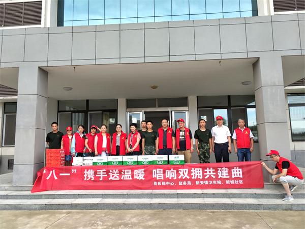 “八一”建軍節到來之際,7月27日,來安縣局志愿者在新城社區的組織領導下,頂著炎炎烈日到武警支隊看望慰問武警官兵,為他們送去節日的祝福及防暑飲品,感謝他們長期以來對維護社會穩定、守衛人民的幸福安寧,為我縣社會經濟等各項事業發展所做的卓越貢獻,受到官兵的熱烈歡迎及深深的感謝。