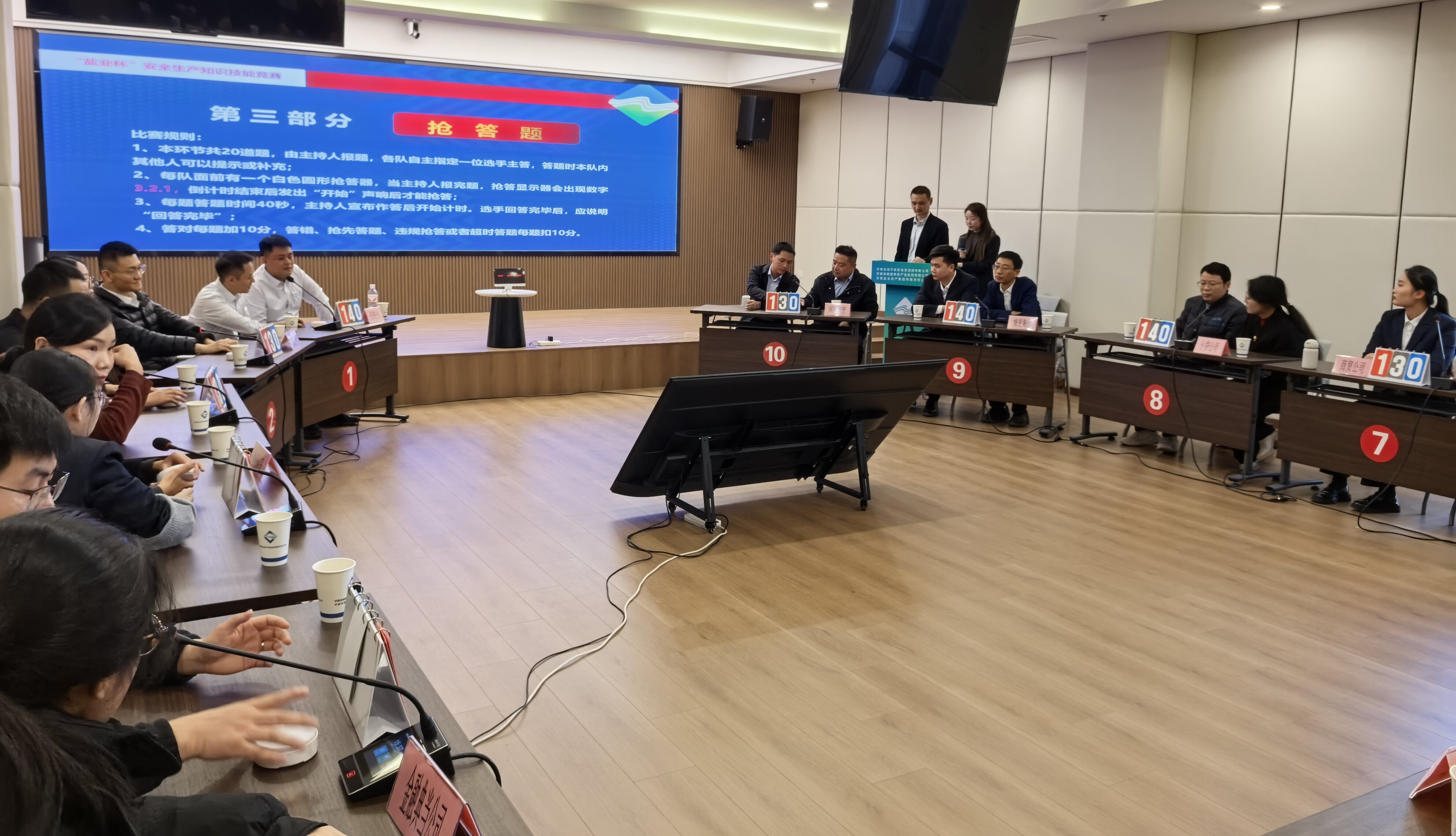 本次競賽以“人人講安全,個個會應急——查找身邊安全隱患”為主題,聚焦政策法規(guī)和實踐操作,旨在全面提升干部職工對危險、有害因素的辨識能力與應急處置技能,堅決防范生產安全事故發(fā)生。經過前期籌備,來自集團所屬企業(yè)的10支代表隊同臺競技,各代表隊冷靜答題、奮勇爭先。“各顯身手”個人必答和“齊心協(xié)力”團隊必答環(huán)節(jié)穩(wěn)扎穩(wěn)打,展現扎實知識儲備;“爭分奪秒”搶答環(huán)節(jié)分秒必爭,考驗快速反應能力;“勇攀高峰”風險環(huán)節(jié)深入分析,實現理論實踐深度融合。尤其在風險題環(huán)節(jié),選手們根據實際案例查風險、找隱患,展現了對政策法規(guī)知識的準確理解和解決實際問題的良好能力。